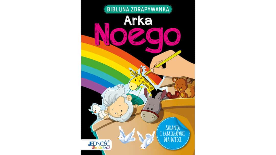 Dowiedz się więcej o Arce Noego! Rozwiązuj kolejno zadania, zdrapując wierzchnią warstwę farby za pomocą patyczka dołączonego do książki. Baw się dobrze!