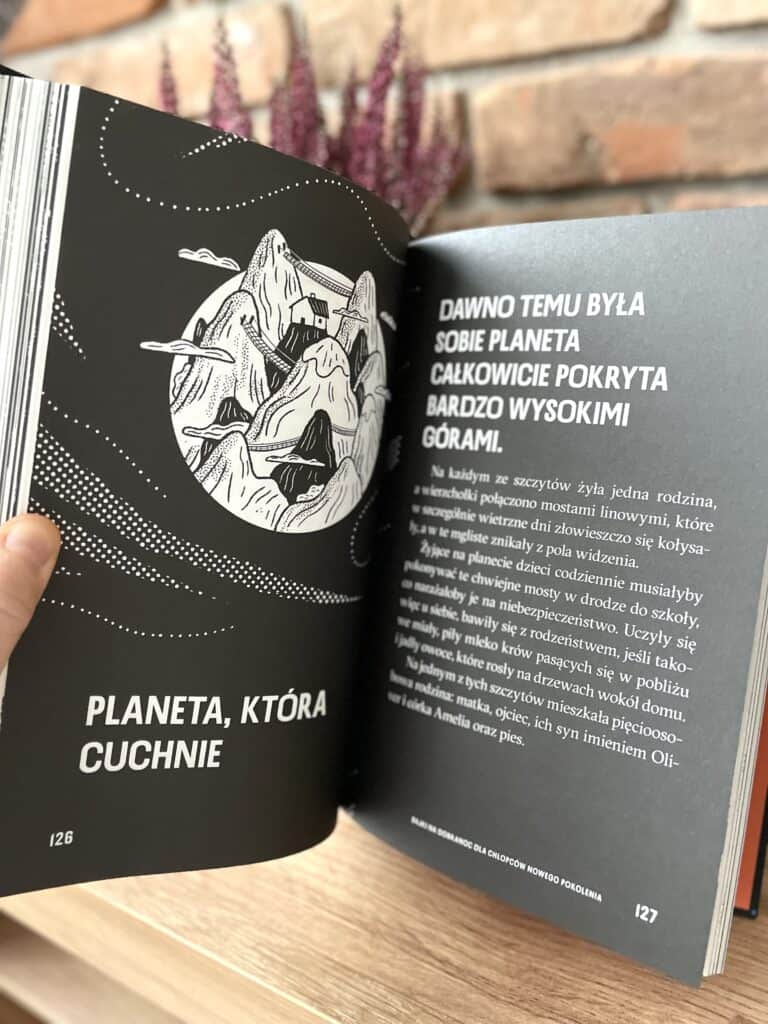 Każda opowieść rozgrywa się na innej planecie np. zamieszkałej przez piratów, duchy, orkiestrę zwierząt czy chłopca, który urodziny świętuje przez cały rok. W sumie jest tu 12 historii, a te z pozoru fantastyczne światy, pełne humoru i barwnych przygód, są jedynie tłem do rozmowy o emocjach, wrażliwości i wolności bycia sobą.