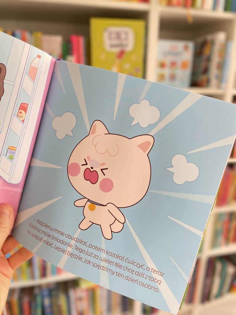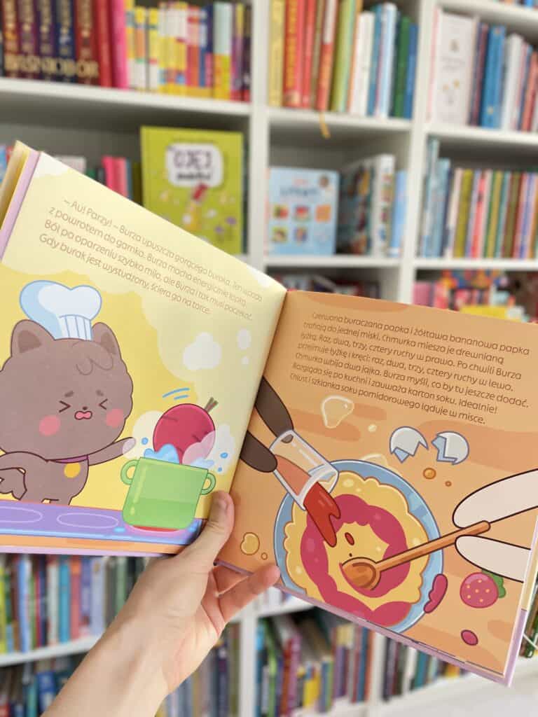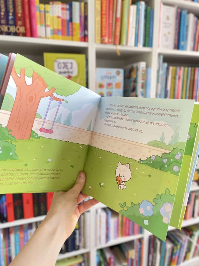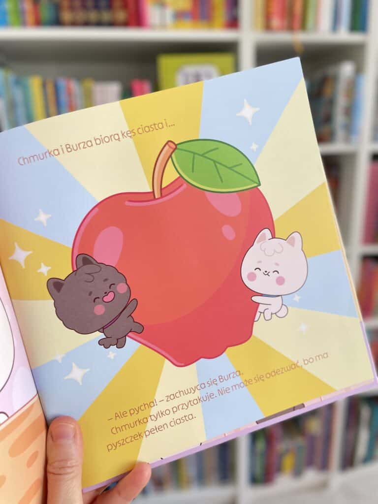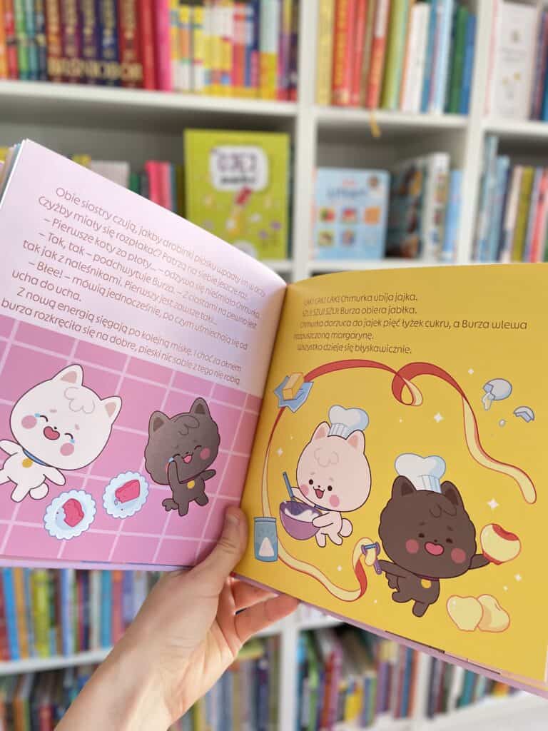 Swoją droga, trochę mi się to kojarzy z Bluey, może to będzie taka nasza rodzima wersja wesołego, psiego rodzeństwa. Co myślisz? Chmurka i Burza są urocze, choć zupełnie różne i to widać w książkach. Tu dzień może się zacząć uśmiechem, słońcem i świetnym pomysłem, a zakończyć burzą. Ale spokojnie, po niej na pewno w końcu zaświeci słońce, czyli klasyczne zabawy rodzeństwa.