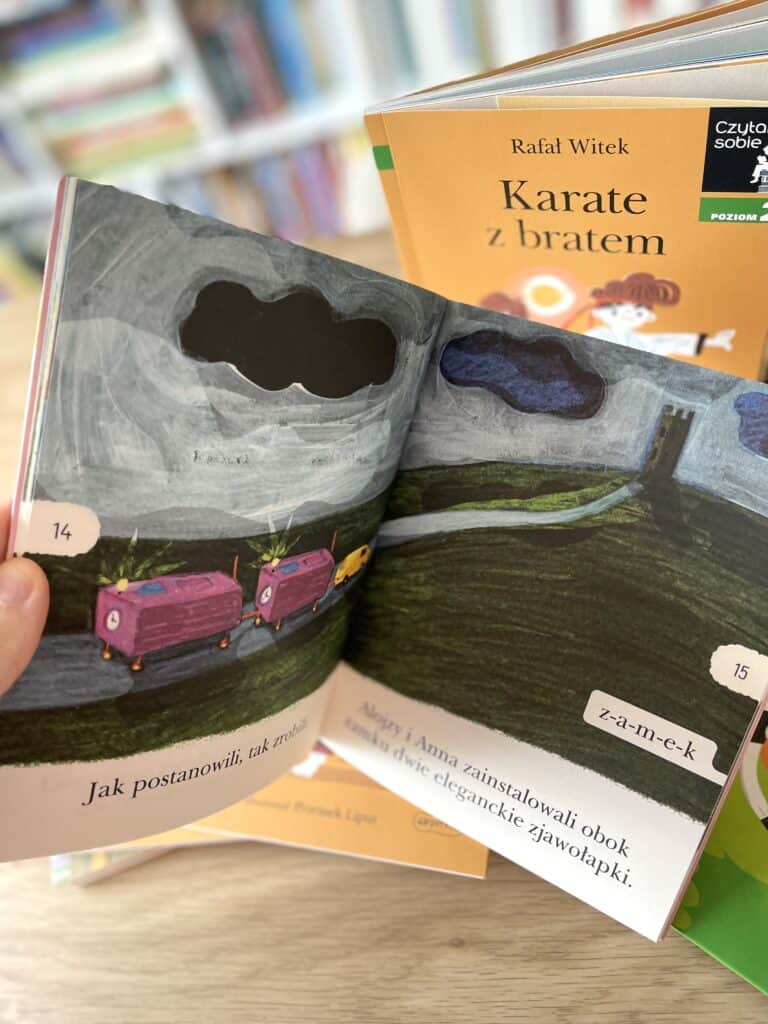 Tego wsparcia w książkach jest zresztą całkiem sporo, bo każdy poziom tworzony jest według ścisłych zasad. Na przykład mniej słów na stronie, brak dwuznaków na pierwszym poziome, zachęta do głoskowania.