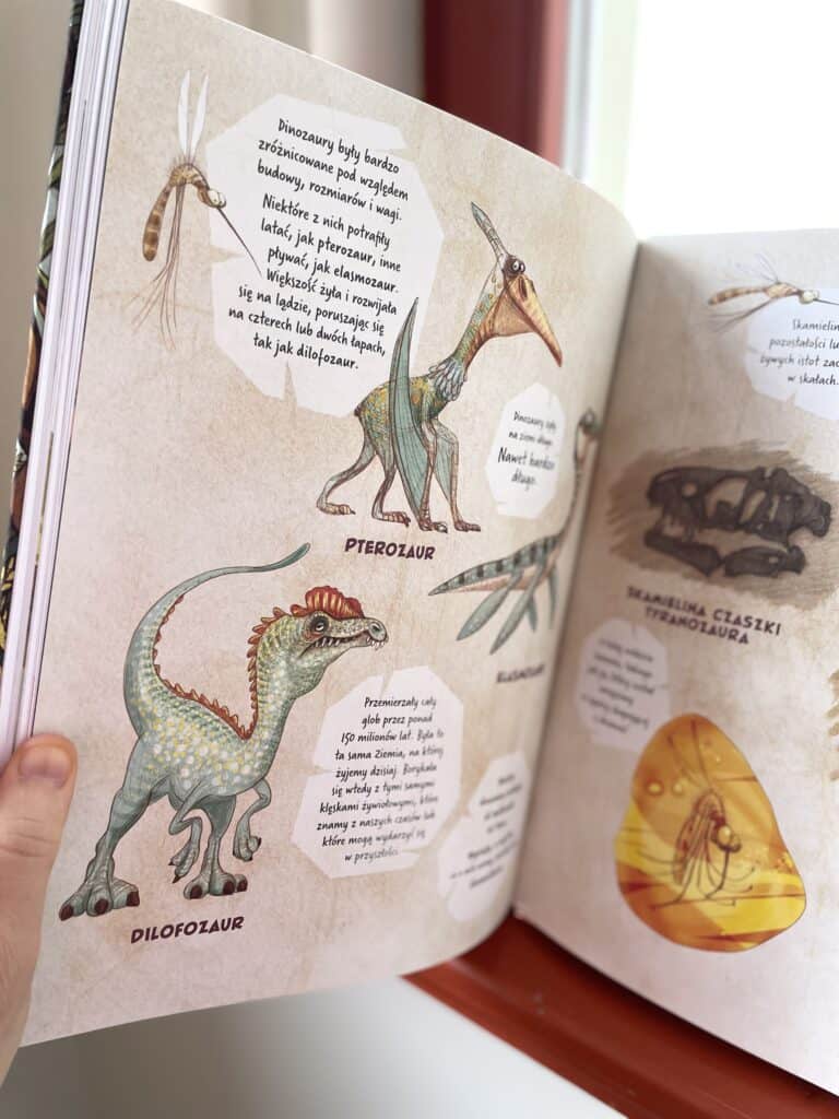 Muszę wam też powiedzieć, że świat dinozaurów nie różni się aż tak bardzo od tego ludzkiego, przynajmniej w tej książce. Głównym bohaterem jest dość strachliwy Weluś, który boi się nawet komarów. Oj — może pomyślisz — też mi strach, taki mały komar. Przypominam, że komary dzisiaj wyglądają inaczej niż te prehistoryczne.