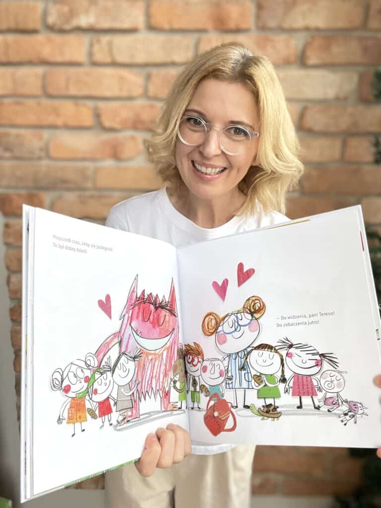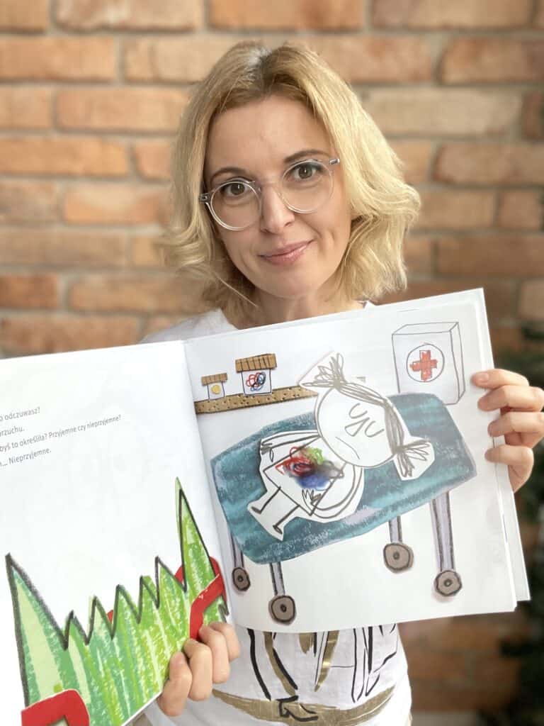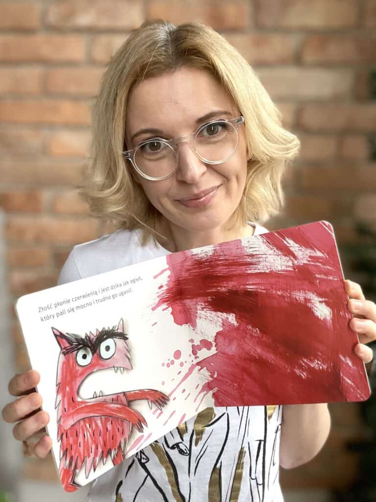 Kolorowy potwór ma swoją specjalną apteczkę pierwszej pomocy i to jest naprawdę genialne rozwiązanie. Można dawać i otrzymywać całusy, założyć nauszniki wyciszające, wąchać ulubione kwiatki, każdy ma coś, co mu pomaga z takim chaosem. To gotowa instrukcja niesienia pomocy w trudnych chwilach.
