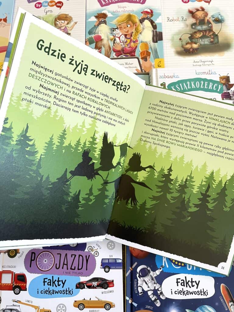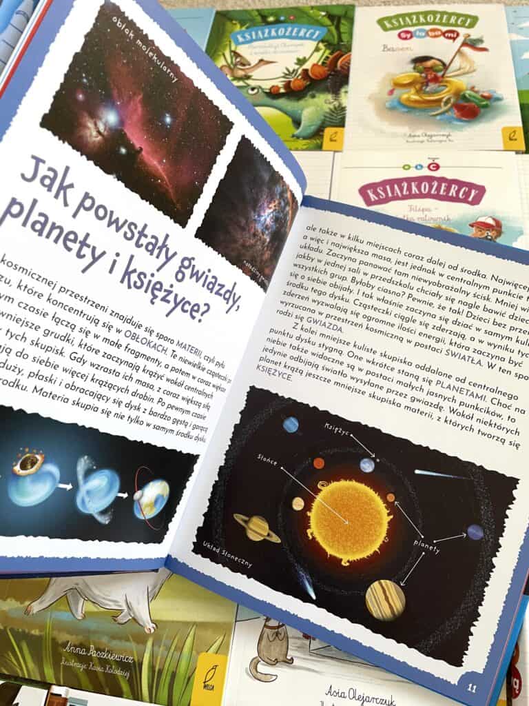 Tytuły takie jak „Moje pierwsze ABC”, „Kosmos” czy „Pojazdy” pozwalają połączyć naukę czytania z poznawaniem otaczającego świata. Moim zdaniem to też świetna opcja na uniwersalny prezent dla dzieci.