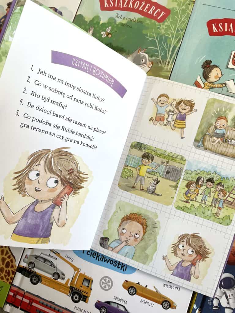 Każda książka zawiera kolorowe ilustracje i pytania sprawdzające rozumienie tekstu, które zachęcają dziecko do aktywnego czytania. To świetny start, jeśli chcesz, żeby dziecko samodzielnie odkrywało radość z przeczytania całej książki.