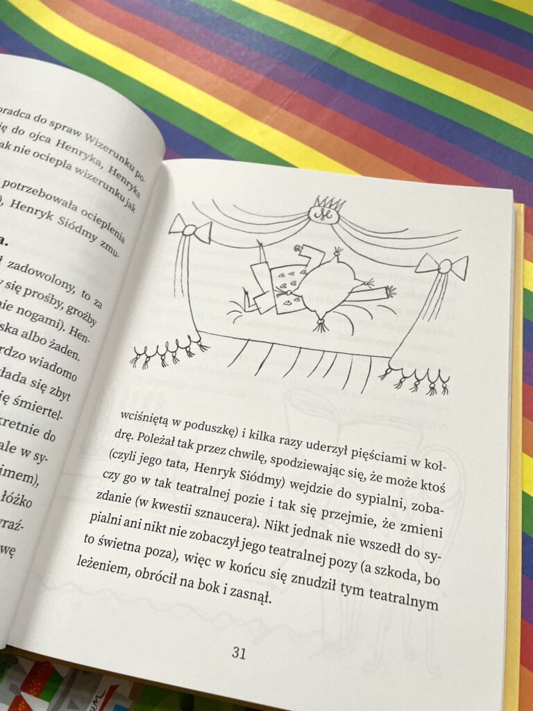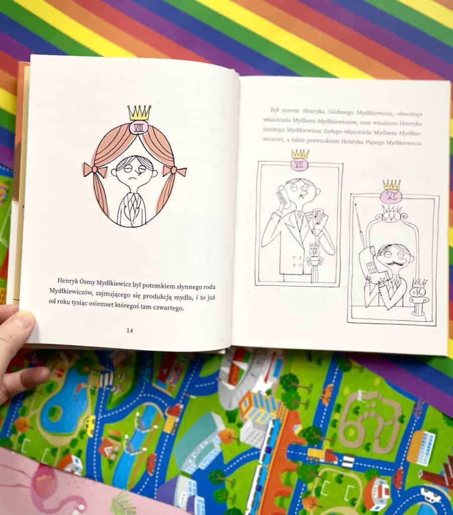 Głównym bohaterem jest Henryk Ósmy, syn wiecznie zajętego właściciela fabryki mydeł wszelakich, Henryka Siódmego. Autorka genialnie pokazuje pokoleniową sztafetę imion, wprowadzając nas w klimaty „arystokratyczne”. Tak, ten cudzysłów jest tu bardzo potrzebny. 😉