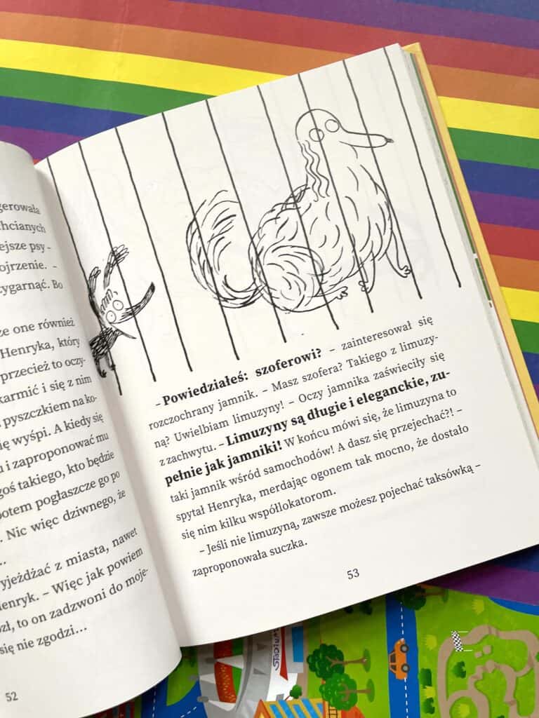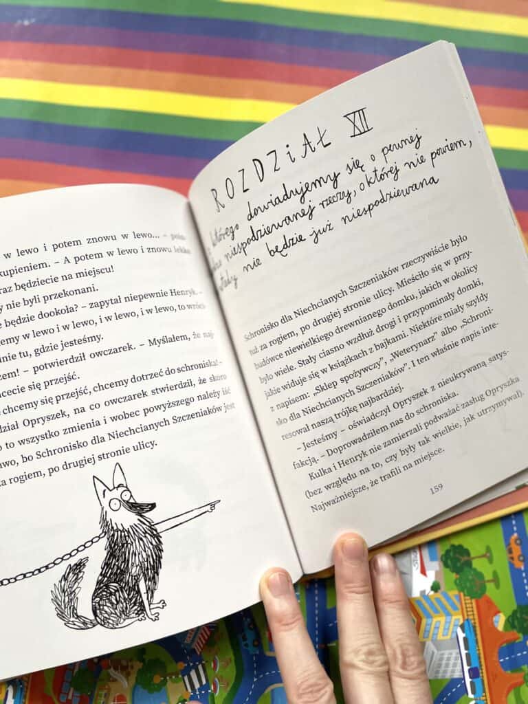 Henryk, który początkowo gardzi psami ze schroniska, zaczyna rozumieć, że ta przygoda jest dla niego prawdziwą szkołą życia. Będą też inne atrakcje np. spotkanie z kotem, konfrontacja z arcywrogiem Henryka, ucieczki i dyskusje, które sprawią, że książka utrzyma waszą uwagę do ostatniej strony.