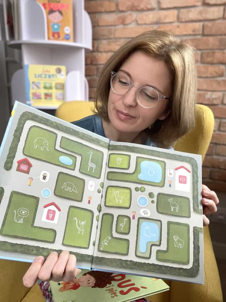 W książce czeka na początku labirynt, a konkretnie wycieczka alejkami ZOO. A na końcu autor przygotował coś, co bardzo doceniam, czyli listę rzeczy do zabrania na wycieczkę. I tekst dla rodziców o tym, jak przygotować dziecko na tę pierwszą wielką wyprawę. Książka przemyślana od pierwszej do ostatniej strony.