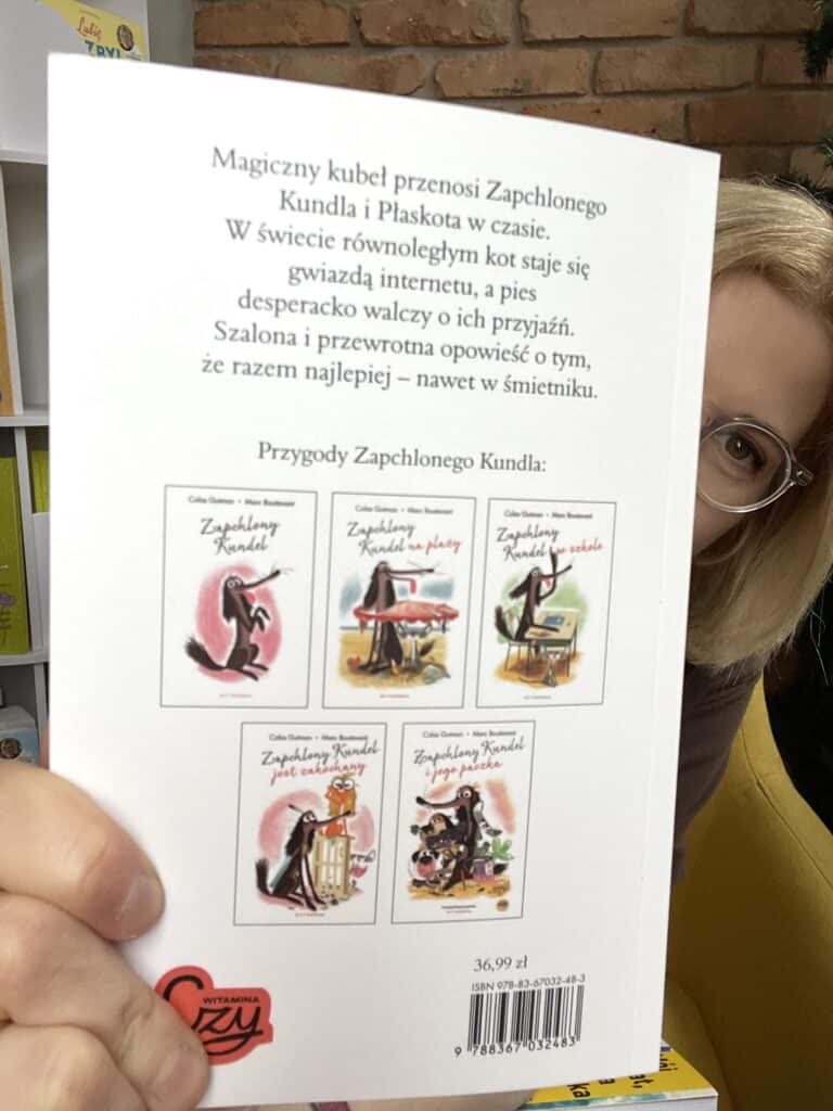Najnowsza część, ”Zapchlony Kundel i kubeł do podróży w czasie”, zabiera nas w podróż, ale bardzo niezwykłą. Kundel i Płaskot znajdują magiczny kubeł-maszynę, dzięki któremu trafiają do przeszłości. Tam świat nabiera nowych barw choćby dlatego, że Płaskot przemienia się idola internetu, a Kundel (nadal zapchlony i pachnący sardynkami) musi zmierzyć się z presją „bycia kimś”.