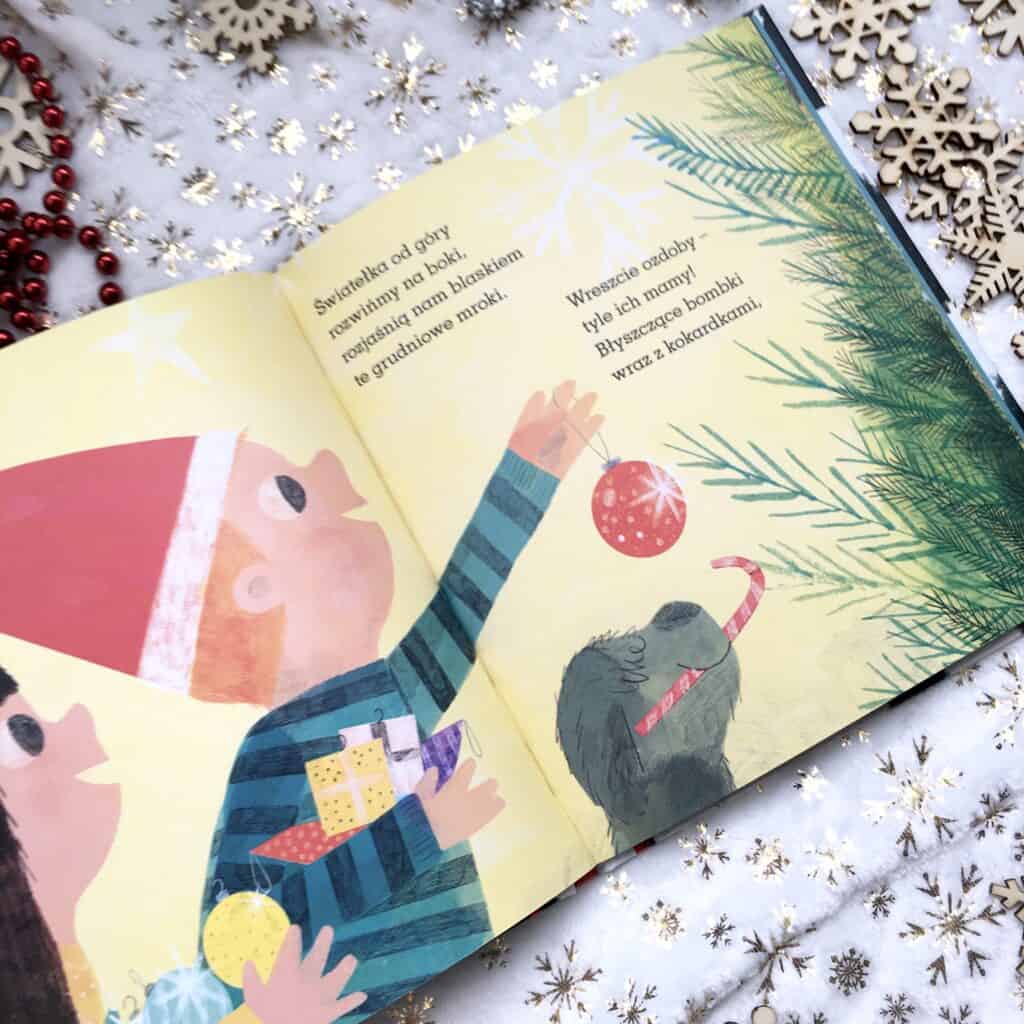 Mała książka pachnąca zimą, świętami i rodzinnym ciepłem. Wybieranie drzewka, wspólne przygotowania, ta ekscytacja, która towarzyszy dzieciom, kiedy w domu zaczynają się świąteczne rytuały.