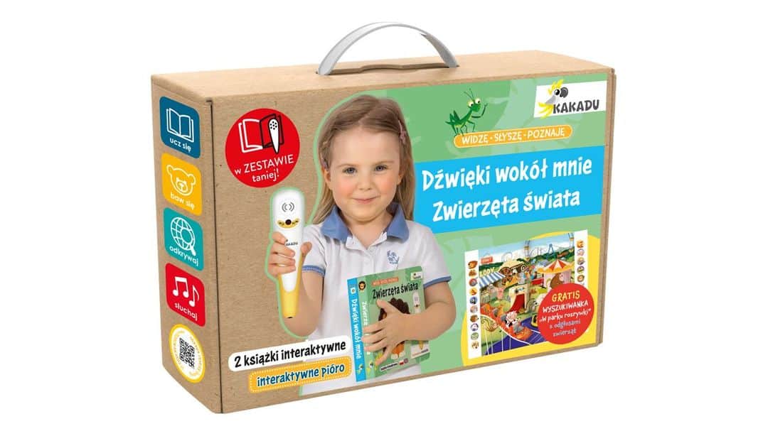 Zwierzęta świata i Dźwięki wokół nas to książki interaktywne z piórem Kakadu, które uruchamia zakodowane na stronach teksty i dźwięki. Publikacje są częścią innowacyjnego systemu nauki i zabawy w jednym.