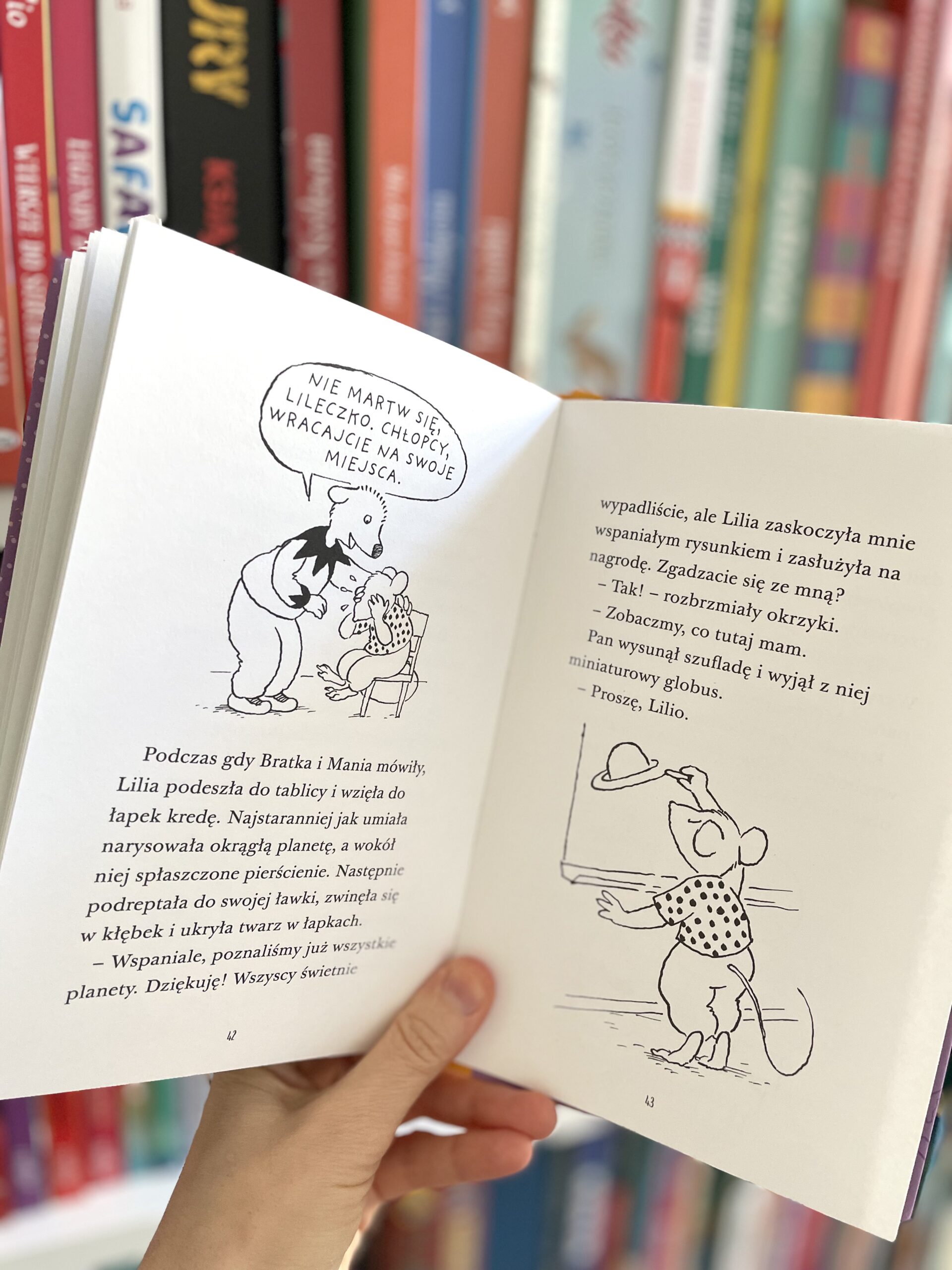 Wiem, że seria o Myszonku ma swoich zagorzałych zwolenników, choć zdarzają się też przeciwnicy, dla których to fińskie ”nieowijanie w bawełnę”, to trochę za dużo do czytania z dzieckiem. Dlatego jasno nakreślam, co znajdziemy w tej części: wszechświat, ciekawostki o kosmosie, współpracę przy projekcie i to brzydkie słowo wypowiedziane w kłótni. Oczywiście nie pozostaje ono bez komentarza, bo autorka bardzo świadomie go użyła. W tej szkolnej sytuacji ono jest ”po coś” i mam nadzieję, że ten zamysł zostanie odczytany.