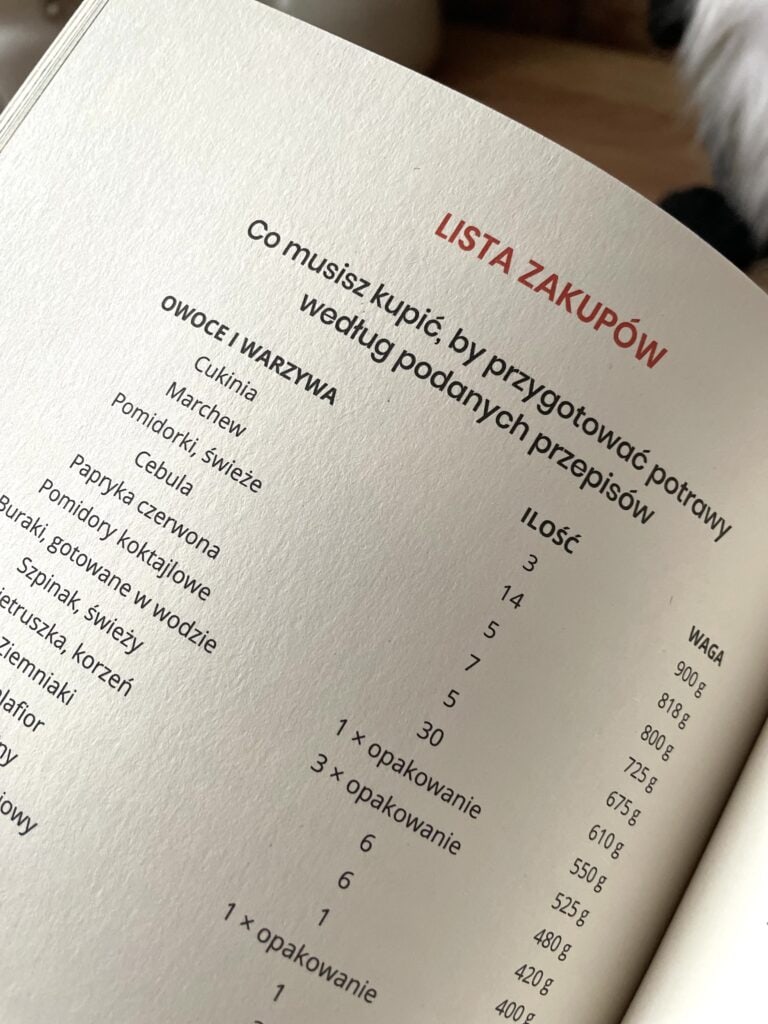 Rozpisane są jadłospisy i listy zakupów, które ułatwiają planowanie codziennych posiłków. Czy to jest super narzędzie, które po prostu można mieć pod ręką? Pewnie!