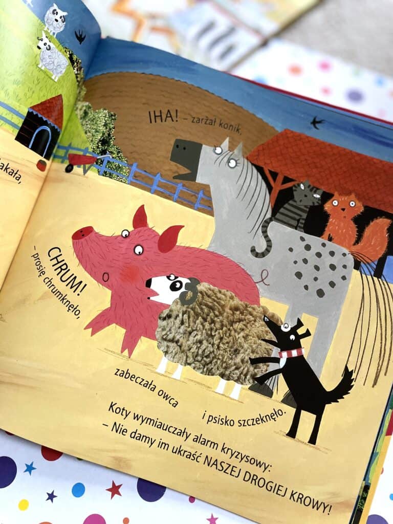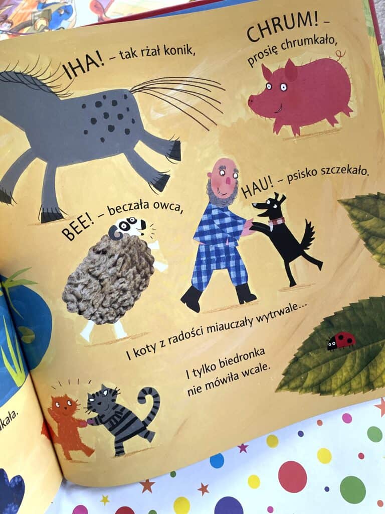 Na tej wesołej farmie każde zwierzę ma swój głos: mu muczała krowa, ko kura gdakała, gę gę gę gąska, kwa kwa kaczka!