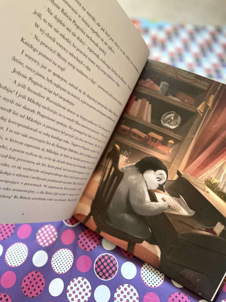 Marta Guśniowska stworzyła historię, która delikatnie pokazuje ważne sprawy. Empatię i troskę o innych, bo Pingwin martwi się o Mikołaja i nie waha się mu pomóc. Gotowość do wspierania, bo przecież na każdym kroku nasz bohater wyciąga pomocne skrzydło.