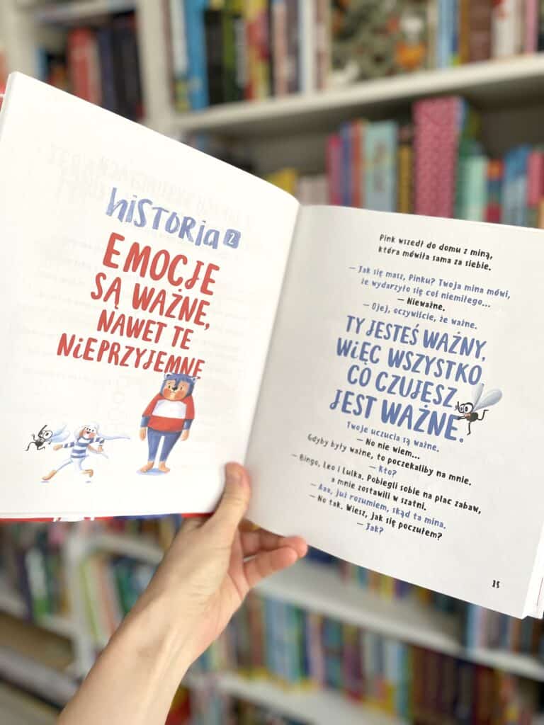 Podkreślam słowo RAZEM, bo z tej książki można wynieść najwięcej, gdy patrzymy dziecku w oczy, rozmawiamy i odnosimy się do sytuacji, które ono zna. Wtedy to ma największą wartość i największą moc. A przy okazji my jesteśmy obok dziecka i rozmawiamy o emocji, która łatwa nie jest.