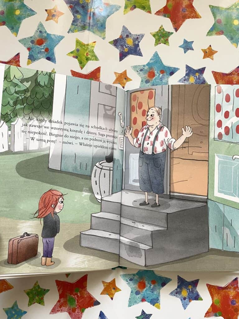 Saga zna i kocha dziadka, to nie jest obca osoba. Ale nocowanie to zupełnie inna bajka niż zwykła wizyta i autorka bardzo precyzyjnie te różnice pokazuje.