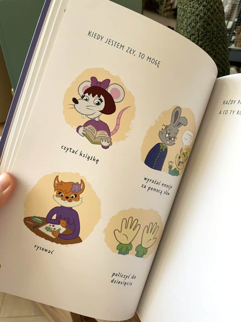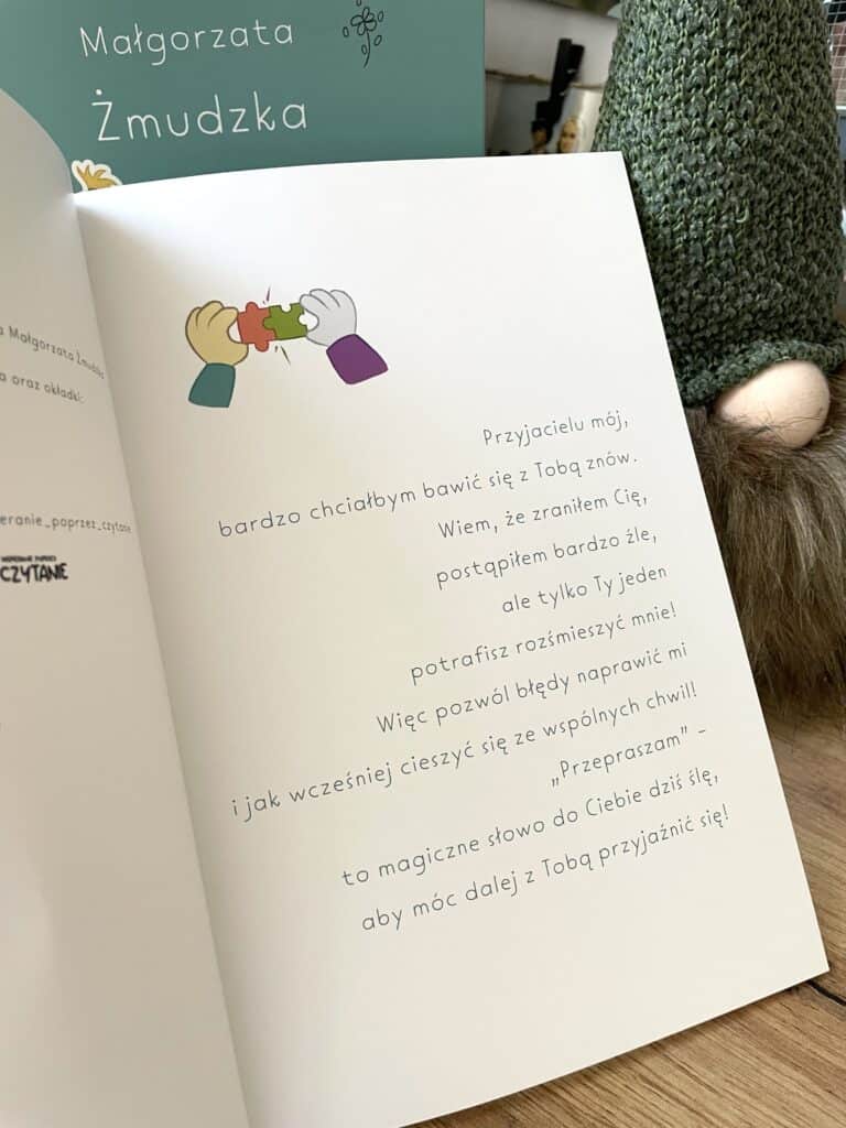 To ciekawe, bo autorka pokazuje coś, co wielu dorosłym jest naprawdę trudno przyjąć, a co jest absolutną prawdą o dzieciach w wieku przedszkolnym. Samo powiedzenie „idźcie się przeprosić” w momencie szczytowych emocji nie działa. Dzieci potrzebują najpierw czasu na uspokojenie się, a w następnej kolejności narzędzi do rozwiązania konfliktu.