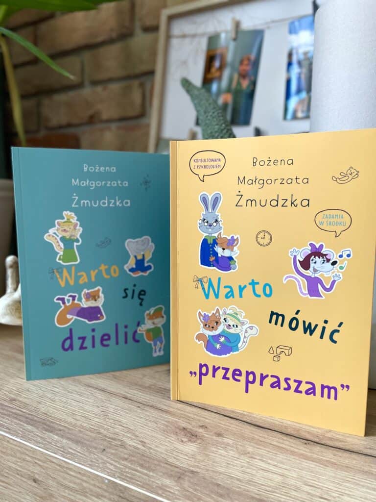 Warto mówić przepraszam” Bożeny Małgorzaty Żmudzkiej to książka o emocjach dla dzieci w wieku 5-8 lat. O tym, jak trzy przyjaciółki z zerówki uczą się rozwiązywać konflikty i odkrywają, że przepraszanie nie jest wcale takie łatwe, jak się dorosłym wydaje. W tej serii jest jeszcze książka „Warto się dzielić”.