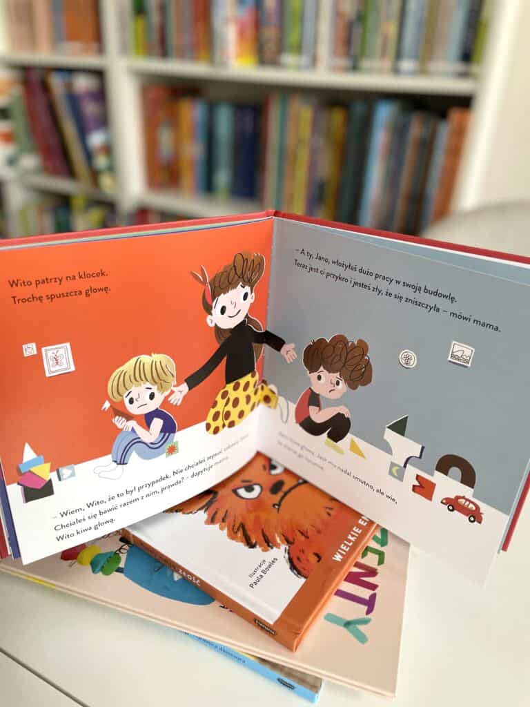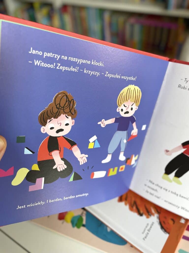 Och, jak ja lubię tę serię. Wiola Wołoszyn i Przemek Liput znów się popisali. Ta książka pokazuje złość na konkretnym przykładzie. Młodszy brat niechcący rozwala klocki starszego. Znacie to?