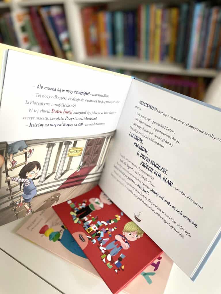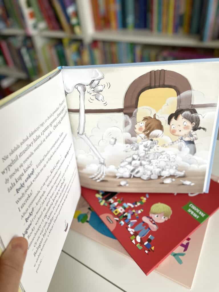 Starsze dzieci też zasługują na interesujące książki o emocjach. Mamy więc prawdziwą przygodę, czyli rodzeństwo (plus pies). Wyruszają nocą do muzeum, żeby rozwiązać zagadkę zaginionej kości dinozaura.