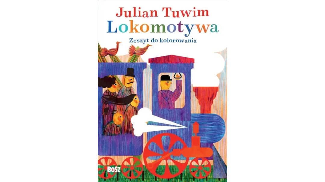 „Lokomotywa” to jeden z najbardziej znanych wierszy Juliana Tuwima, klasyk polskiej literatury dziecięcej. Wspaniała rytmika i powtarzające się frazy, nadają utworowi niemal muzyczny charakter. Owa muzyczność słów w połączeniu z niezwykłym kolorytem opisów, w niesamowity sposób angażuje wyobraźnię dzieci, które – dzięki kolorowance – mogą przenieść swoje emocje i wizję wjeżdżającej na tory, pełnej przedmiotów, zwierząt i ludzi, lokomotywy, na papier. To idealne połączenie dobrej literatury dla najmłodszych z ich twórczą i kreatywną zabawą!.