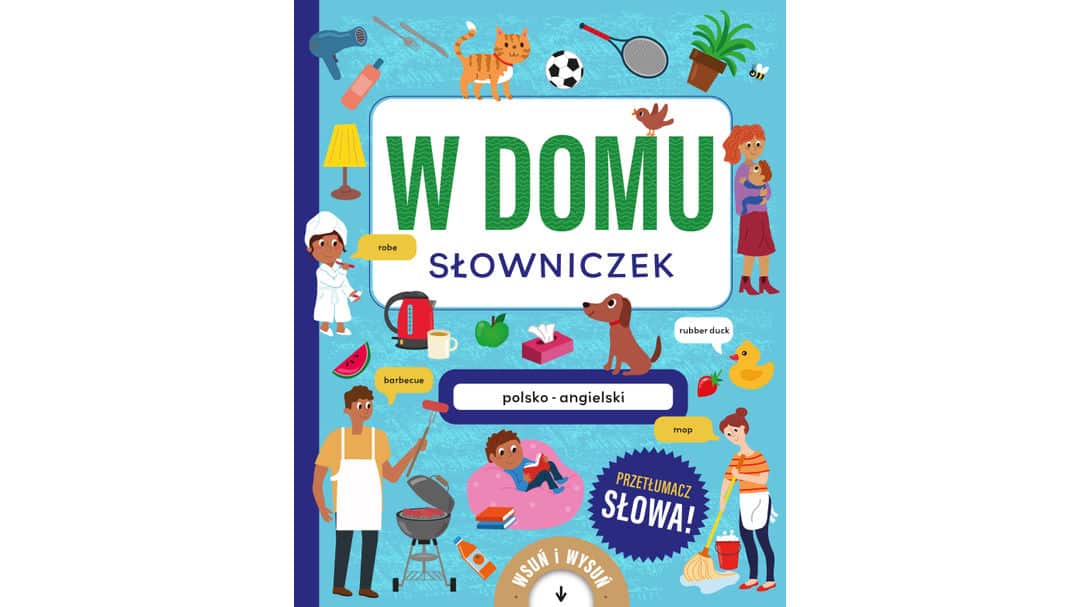Książka zawiera kolorowe scenki umieszczone w różnych miejscach domu, dzięki czemu młodzi czytelnicy poznają aż 100 angielskich słów.
