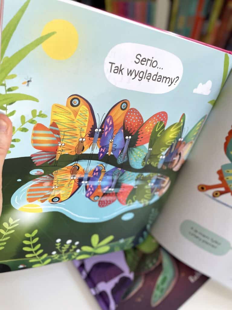 A potem wszyscy zamieniają się w motyle, tylko te kolorowe, wzorzyste wciąż nie są zadowolone ze swojego wyglądu. Są piękne, ale nie widzą tego i nie doceniają.